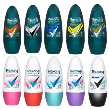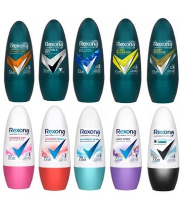 Produk utama REXONA adalah deodoran antiperspiran yang dirancang untuk memberikan perlindungan andal dari keringat dan bau badan, terutama bagi individu yang aktif bergerak.