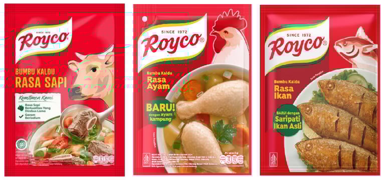Royco dikenal mampu memperkuat dan memperkaya cita rasa gurih alami dalam masakan. Yang berasal dari kaldu Ayam, Sapi dan Ikan.