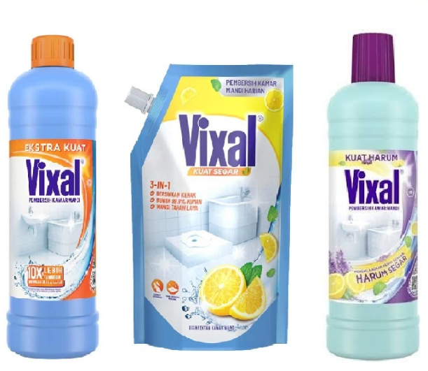 Vixal diformulasikan secara khusus yang memiliki formula ekstra kuat dan tangguh untuk secara cepat menghilangkan noda membandel, kerak, dan karat yang sulit dibersihkan. Keunggulan utamanya adalah kemampuannya membersihkan secara maksimal sekaligus membunuh kuman dan bakteri penyebab penyakit, serta hadir dalam varian Kuat Harum yang memberikan kesegaran aroma pada kamar mandi. Selain itu, desain tutup botol Vixal dibuat praktis untuk memudahkan penuangan dan penghematan.
