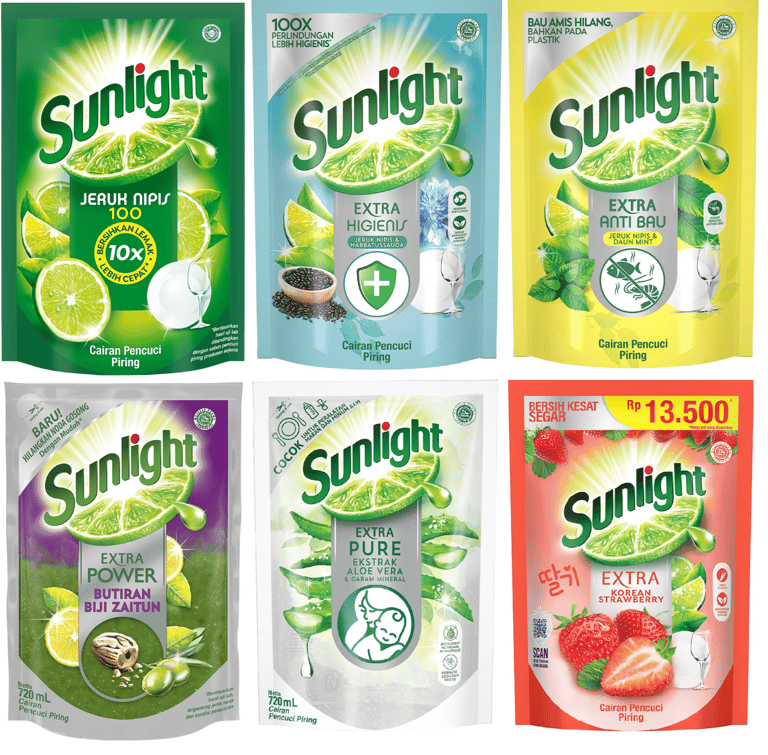 Sunlight adalah merek sabun pencuci piring terkemuka yang keunggulannya terletak pada formulanya yang mampu menghilangkan lemak dan minyak lebih cepat pada peralatan makan dan dapur, sehingga menjadikan proses mencuci dan membersihkan peralatan rumah tangga secara keseluruhan menjadi lebih mudah dan efisien.