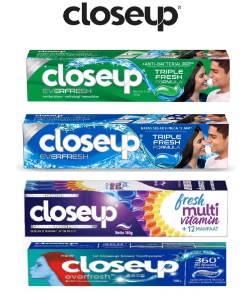 Closeup adalah pasta gigi gel pertama di Indonesia dan dunia sejak pertama kali diluncurkan di Spanyol pada tahun 1967. Closeup membantu meningkatkan rasa percaya diri dengan formulasi antibacterial mouthwash yang melawan bakteri hingga 99%, sehingga menghasilkan napas segar yang tahan lama hingga 12 jam. Selain itu, Closeup juga efektif mencegah gigi berlubang dan membuat gigi tampak lebih putih alami.
